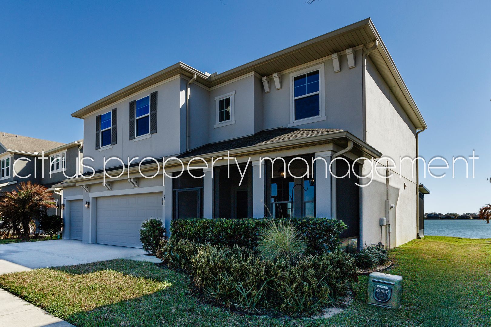 Welcome to Lake Life on the Clermont Chain! This beautiful home sits on a DOUBLE WATERFRONT lot with a private boat dock & electric lift. The screened front patio overlooks the boat channel and nature while the screened lanai runs entire back of the home with stunning water views. Light, bright and neutral throughout, including luxury vinyl plank and granite countertops and vanities make living the lake life a breeze. The beautiful kitchen features 42” cabinets, crown molding, stainless steel appliances with range hood, double oven, large island, and water’s edge views. The family room & dining room alongside the kitchen offer a wonderful entertaining space. The flex room on the first level can serve as an office, bedroom, or whatever you dream up, next to a full bathroom. In addition, you’ll find a spacious office space with double French doors, off of the front entrance. Upstairs, a large loft area can accommodate a second living space or game room. The primary bedroom, with ensuite bathroom, 2 guest bedrooms, and third bathroom are also found upstairs with a spacious laundry room. Community amenities include a pool, clubhouse that can be rented for larger occasions, basketball court, tennis/pickleball court, recently updated fitness center, BBQ grill, pool table, 2 playgrounds, disc golf practice, soccer goal, & expansive green space. This is the nearest gated community to Downtown Clermont where you'll love exploring all the dining, shopping, entertainment, and more. This home offers a lifestyle second to none. Call today!